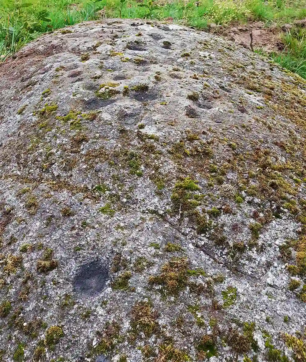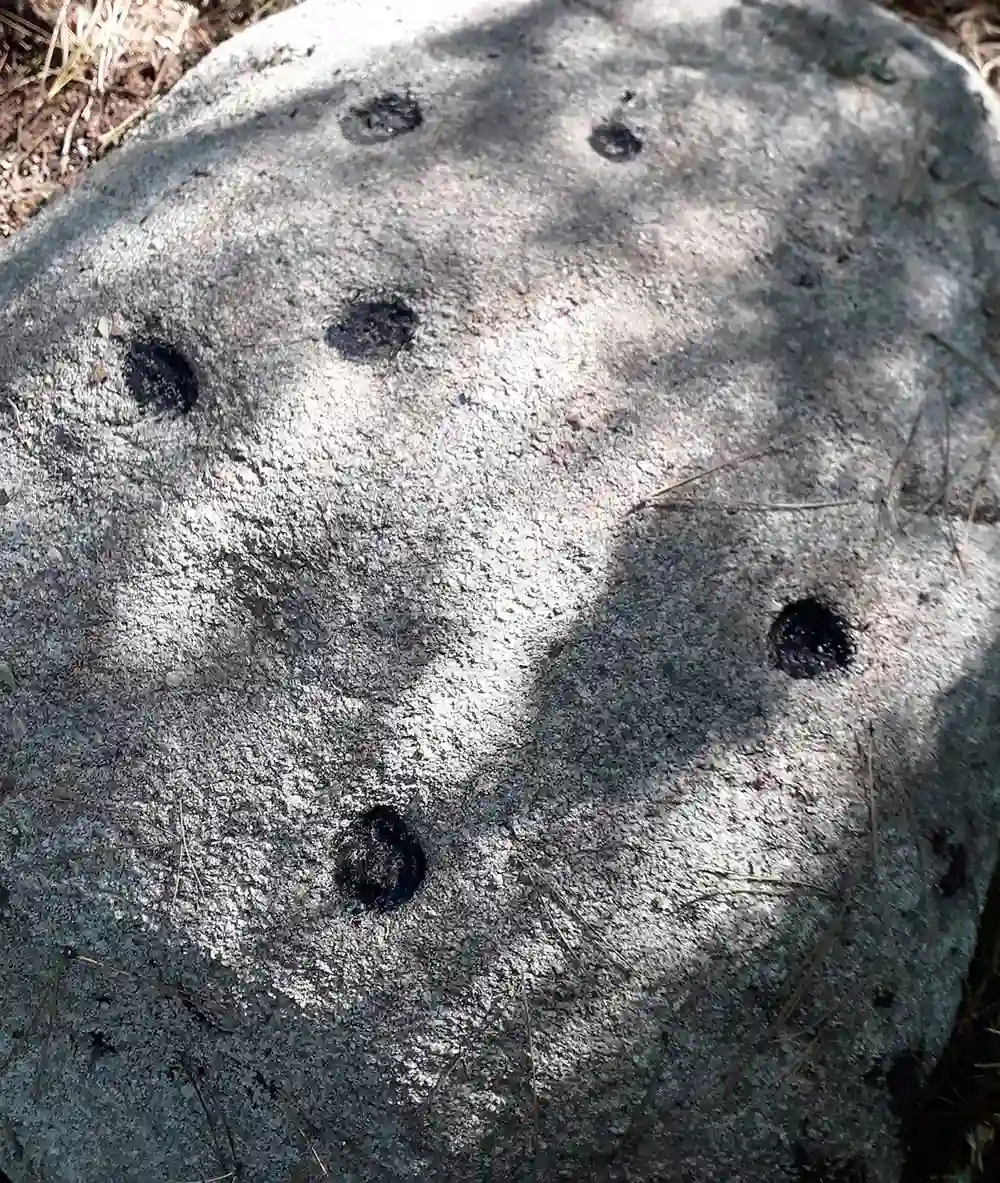 Durante o mes de xullo do ano 2021 os nosos compañeiros da Asociación Amigos do Patrimonio de Toén, David e Ismael atoparon no paraxe denominado “Os Toxás”, unha rocha granítica na que apreciaron unha gran acumulación de coviñas. O lugar, una antiga toxeira, como acreditan tanto os donos da finca como o seu topónimo, é na actualidade unha foresta mixta de carballeiras e piñeiros. Atópase situado a uns douscentos metros ao norleste da capela de S. Xoan (Gradeira-Toén) nunha pequena chaira que descurre paralela a antiga pista do psiquiátrico de Toén, a unha altitude de 497 metros sobre o nivel do mar. Unha vez feito iste achádego, procedeuse a una inspeción mais minuciosa do entorno, o que levou o descubrimento de outras 3 rochas, de similares características, con variacions nos motivos, pero con predominio das coviñas en todas elas.